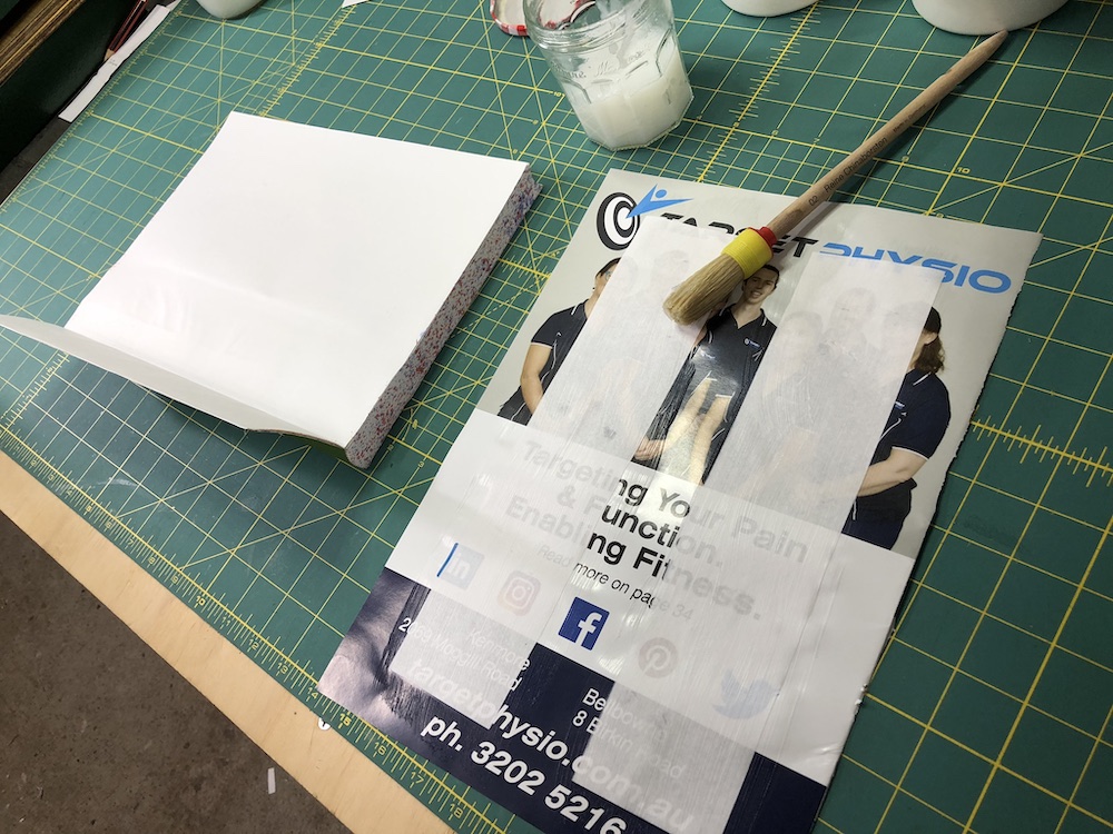 When first learning about the effects of grain the focus is on the negatives of not having the grain run head to tail in a book. But there are times when paper grain can be used to advantage. The issues come about because when paste (moisture) is applied to paper the fibre in the paper expands in width not length. So, when you paste out a piece of paper it expands or stretches perpendicular to the grain. Once the paper is adhered to a board and dries it contracts applying a strain to the board. If this strain is from head to tail the board will buckle head to tail and tear the joint between the boards and the text block. But this strain can also be used to advantage. Some people in a recent class noticed that after covering the boards curled out towards the fore-edge. But once the text is cased in the drying pastedown will counteract this and pull the board back in towards the text.
