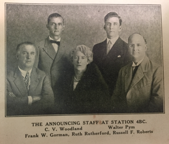 In 1930 it is announced she has been appointed a full-time radio announcer. “The many listeners who have heard Mrs. R. L. Reid ‘on the air’ will be interested to learn that she has been appointed lady announcer for the radio station 4BC” (19). 4BC was started in 1930 and was initially a private radio station established by Mr. J. B. Chandler, who was an electronics retailer and Lord Mayor of Brisbane. The first major broadcasts were of the England versus Australia cricket Test Match. Now Mr. Chandler had everyone’s attention he moved to capture the day time audience of housewives. “Work became lighter when beautiful music was available – sewing was better done when entertainment was to be had at the same time”. The popular Mrs. R. L. Reid was an obvious choice to attract the female audience, and she joined 4 men to make the 4BC announcing staff. 4BC still exists as an AM talk back radio station in Brisbane.